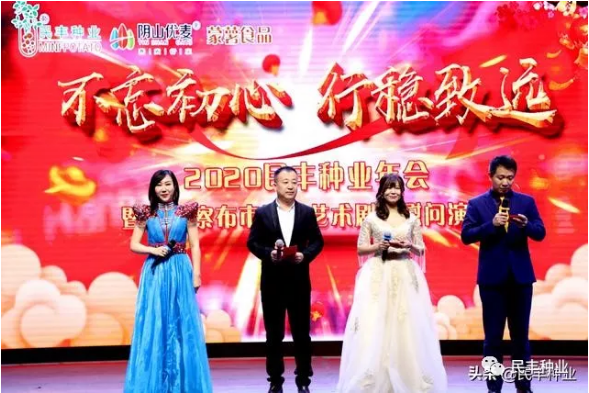 【摘要】2020年1月15日,民豐種業召開2019年終總結會、年度獎金現場發放會,并舉行2020年會暨烏蘭察布市民族藝術劇院慰問演出活動,總部及子公司350余人參加。董事長盧文兵對公司2019年工作及存在問題進行了總結,并對2020年及未來發展作了明確規劃,同時為各農場發放了現金獎勵。十幾載耕耘,不負韶華,民豐人默默蓄勢,只為明日薄發!