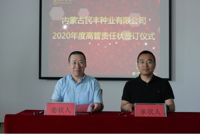 (通訊員 肖向花)為圓滿完成民豐種業2020季生產經營各項業務指標,6月4日上午在公司一樓多媒體會議室,盧文兵董事長與各位高管簽訂了2020季責任狀,公司中高層管理人員及各部門業務骨干齊聚一堂,共同見證了簽訂儀式。