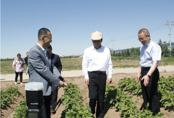 在試驗田前,冀福善向段志強一行介紹,公司為科學種植,合理輪茬,從2015年開始進入燕麥產業,實施“馬鈴薯+燕麥”雙輪驅動發展戰略,在察右中旗成立子公司——內蒙古陰山優麥食品有限公司。目前,陰山優麥已完成投資2.4億元,年產2萬噸燕麥香米、2萬噸燕麥片、2000萬支燕麥杯、6000噸燕麥粉(莜面)和2萬噸藜麥米加工生產線已建成并投入使用,陰山優麥是“自治區農業產業化重點龍頭企業”、“自治區扶貧龍頭企業”。同時,公司依托自身在加工薯種植管理技術、產品質量、倉儲能力等方面的優勢,于2019年初在察右中旗成立子公司——內蒙古蒙薯食品科技有限公司,計劃投資1.5億元,建設“年產8000噸低溫油炸薯條及2000噸果蔬脆片加工項目”,全力打造烏蘭察布市地標性產品,創建全國大的低溫油炸薯條、果蔬脆片深加工企業,已于今年投產。